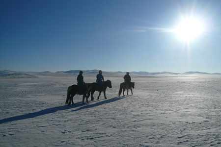 - 初心者から上級者の方まで楽しめるツーリストキャンプゲル泊の冬の乗馬ライディング。