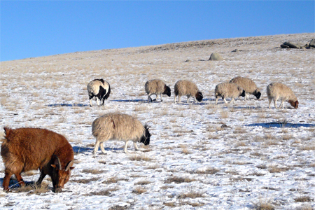 その後、ザミンウデの遊牧民のゲルを訪問。遊牧民特製手作りチーズや乳茶など、遊牧民との交流をお楽しみください。郊外の砂漠地帯は野生のモウコガゼルやフタコブラクダの生息地。運がよければ出会うことも!冬毛がフサフサとしているラクダはとて見応えがあります。